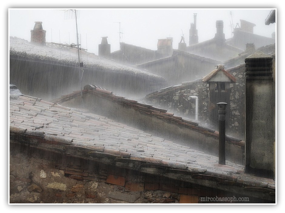 Sopra di noi sta venendo giù il mondo, si direbbe il temporale perfetto, ma qui, protetta dal tetto e da noi due, regna la tranquillità. Vorrei dirti tante cose in momenti come questo, ma poi taccio: perché aggiungere le parole quando non servono? E allora ti guardo, e spero che tu non te ne accorga subito, perché poi sbuffi e mi prendi in giro, mentre io vorrei proprio che nessuno interrompesse questo momento, nemmeno tu.